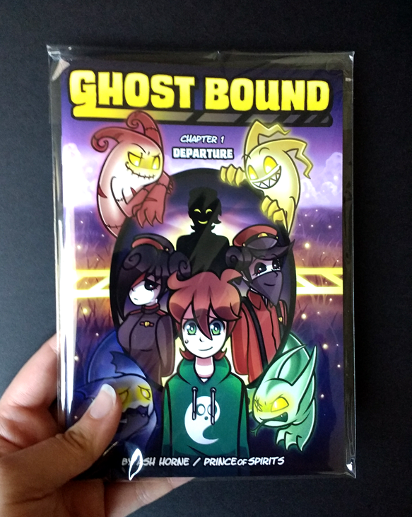A 56-page, full-color, saddle stitch booklet featuring the first chapter of the webcomic Ghost Bound!