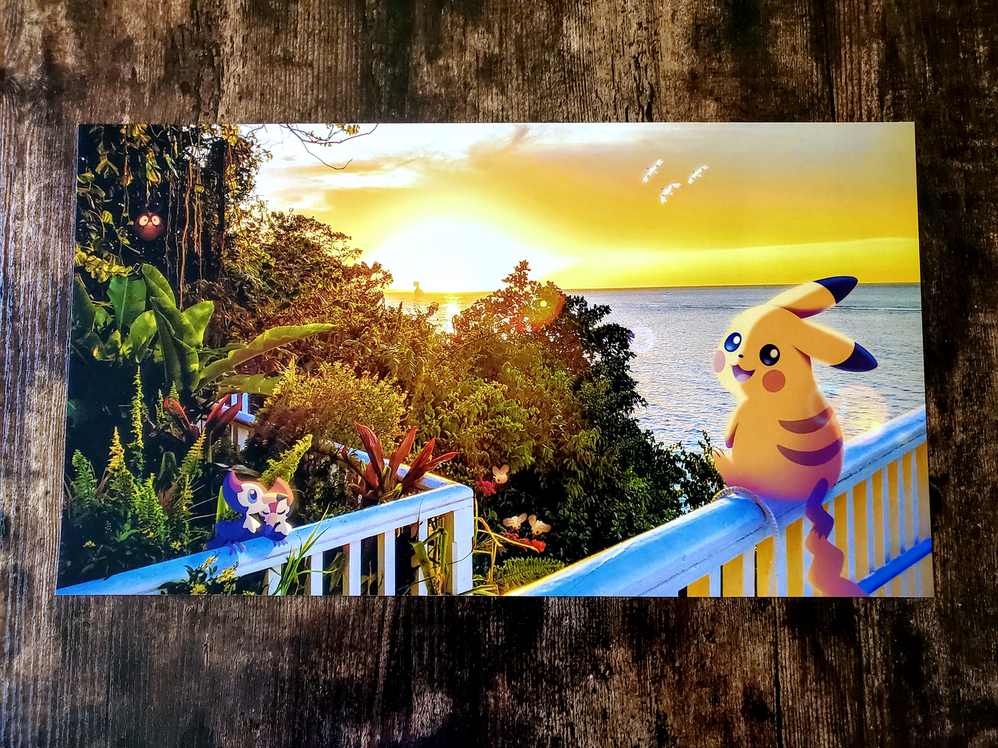 A print integrating Pokémon into a real-life photo to celebrate "New Pokemon Snap"! Can you spot all of the Pokemon?