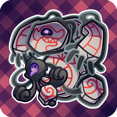 A holographic print featuring the ghost Pokémon from Galar, Galarian Yamask & Runerigus!