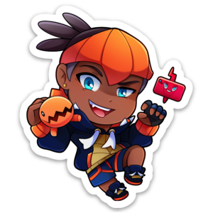 A vinyl sticker featuring the Pokémon trainer Raihan & his partner, Trapinch!