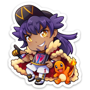 A vinyl sticker featuring the Pokémon trainer Leon & his partner, Charmander!