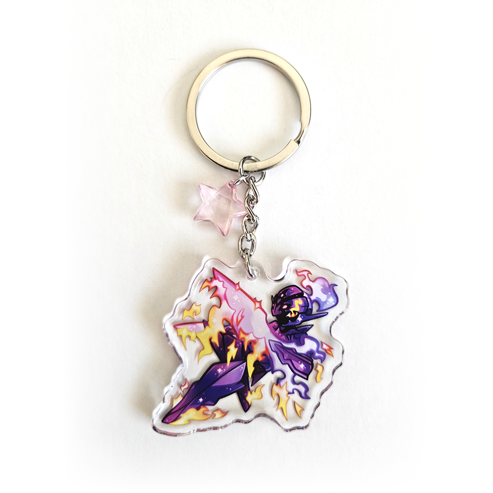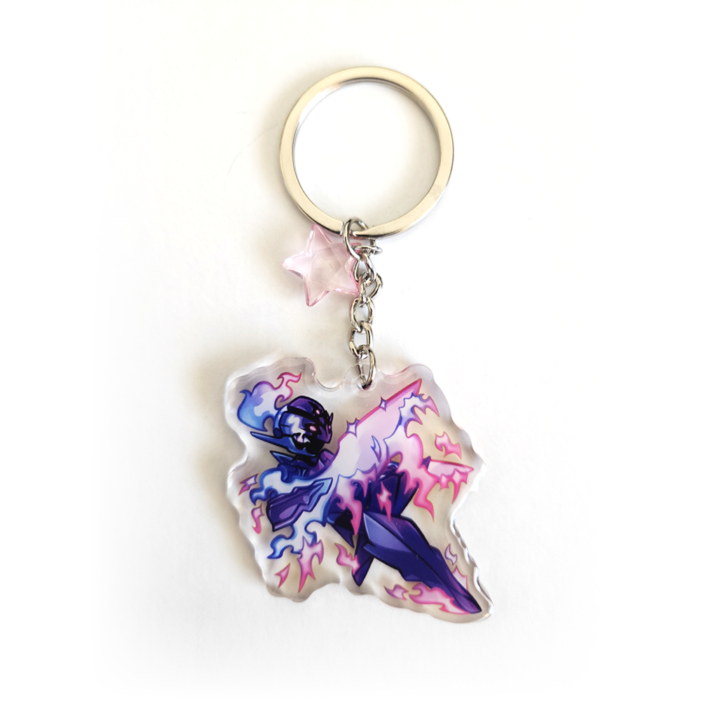 A 2 inch clear epoxy-coated acrylic keychain featuring the Ghost Pokémon from Paldea, Ceruledge!