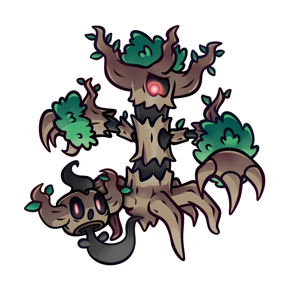 A sticker featuring the ghost-type Pokémon from Kalos, Phantump & Trevenant!
